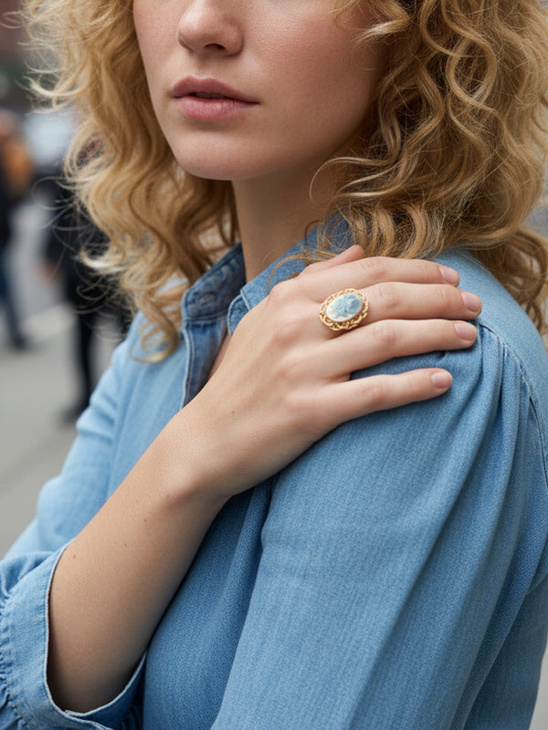 Our hand-carved porcelain cameo jewelry is designed to blend heritage craftsmanship with modern elegance. Each piece is made in small batches using recycled precious metals and natural gemstones — timeless designs created to be worn every day.