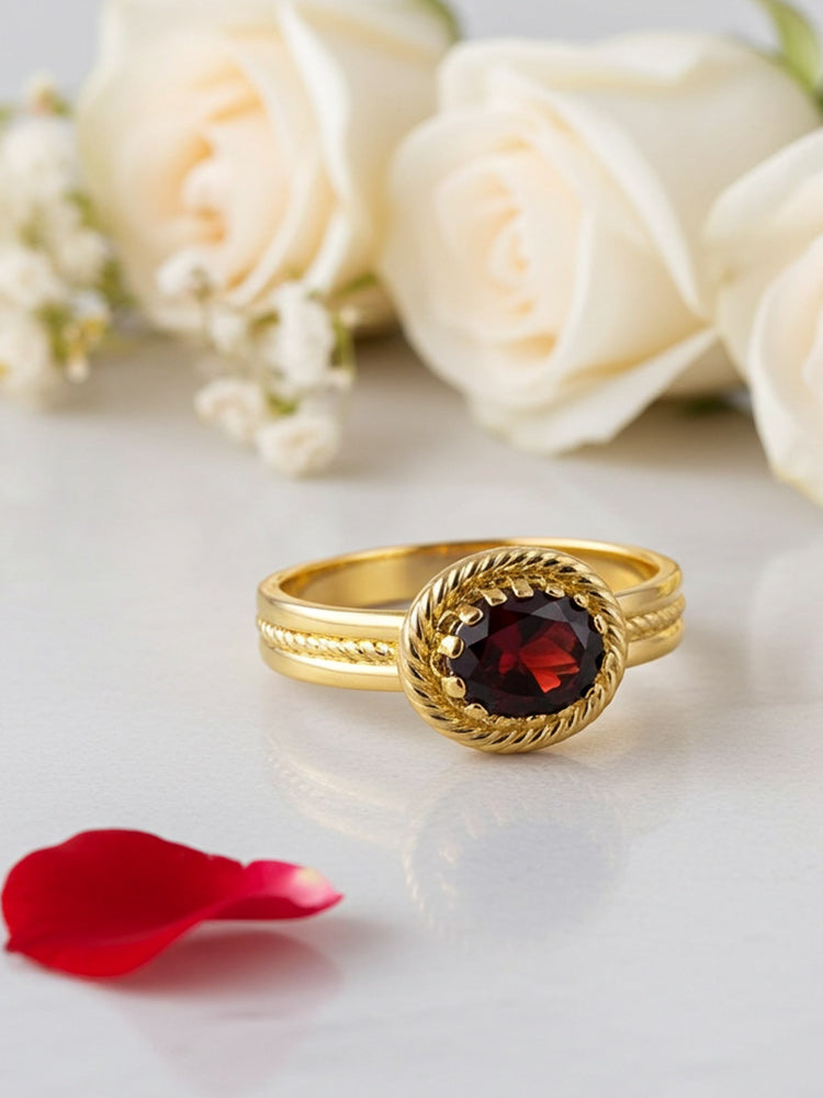 Handcrafted in Italy, this ring embodies timeless elegance and artisanal mastery. The deep red garnet, carefully handset in a gold-plated silver bezel with intricate rope detailing, radiates warmth and sophistication. Made from ethically sourced materials, each piece is created in small batches to ensure authenticity and sustainability. Perfect for everyday wear or as a treasured gift, it’s a true celebration of Italian craftsmanship.