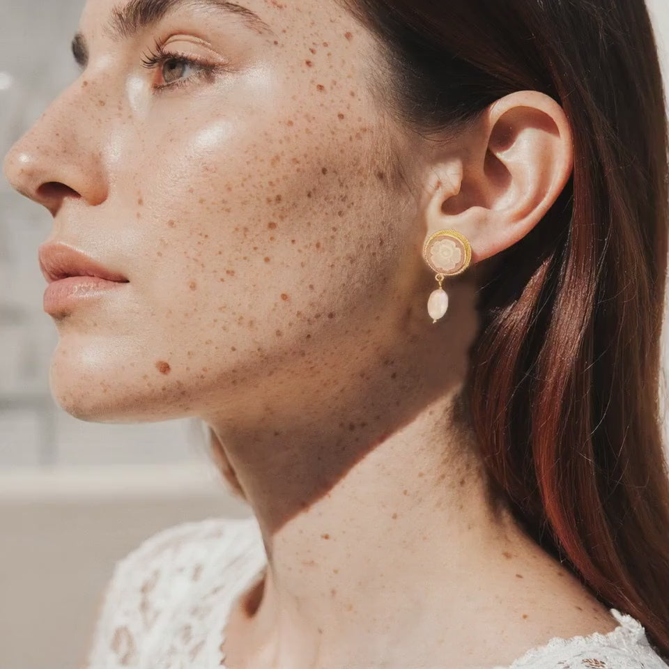 Timelessly elegant and infused with Italian artistry, our Flower Bud Cameo Earrings are a refined expression of craftsmanship and heritage. Each piece is meticulously handcrafted in Italy, featuring a delicate porcelain cameo framed in 18k gold vermeil and finished with a luminous freshwater pearl drop that moves gracefully with every gesture.