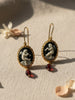 Add a touch of elegance to any outfit with our Playing Angels cameo earrings. Handcrafted from 18-karat gold-plated silver, these delicate earrings feature a beautifully hand-carved porcelain cameo of two cherubs playing, with a stunning garnet pendant. The perfect gift for any special occasion.