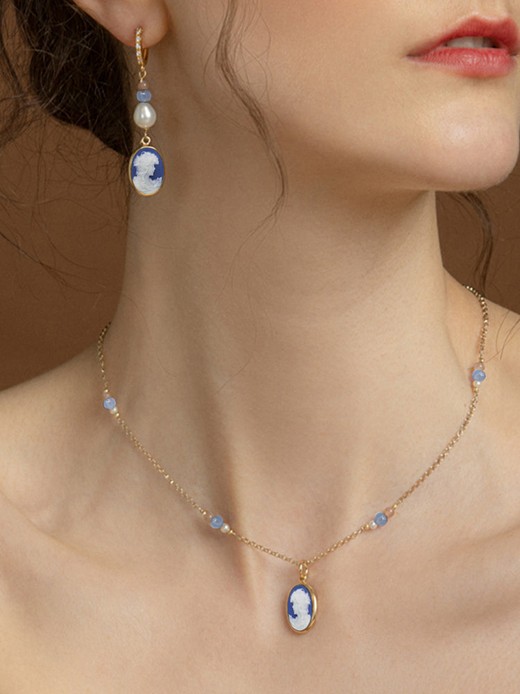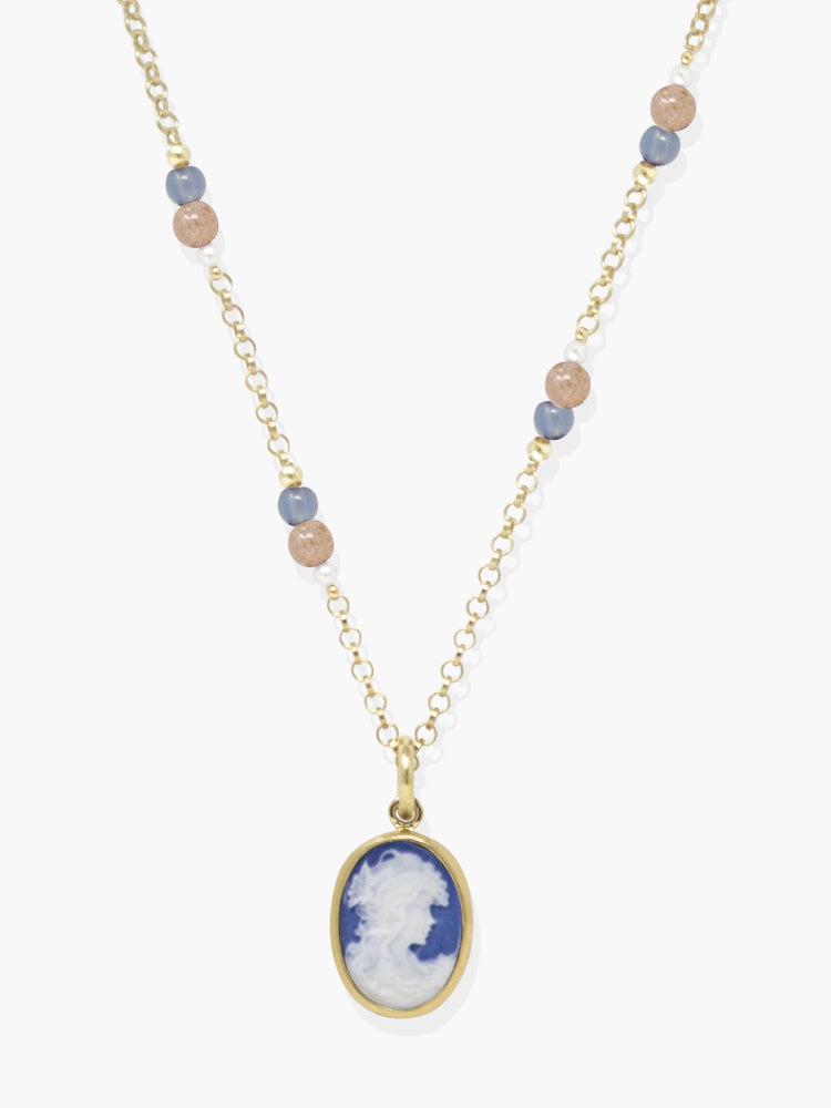 This Little Lovelies Gold-plated Blue Cameo Necklace is a timeless piece that combines Italian craftsmanship with sustainable materials. Handmade using techniques dating back 200 years, the porcelain cameo adds a unique touch to this handcrafted necklace. Make a statement with this eco-friendly and stylish accessory.