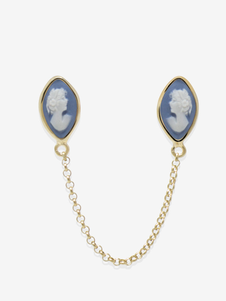 Our 'Little Lovelies' single earring gives you a cool, stacked look without the need for multiple styles. Designed to be worn in a double piercing, it's handcrafted in Italy from 18-karat gold-plated recycled silver featuring a pair of dainty cameos connected by a delicate chain. It works well for everyday or special occasions.