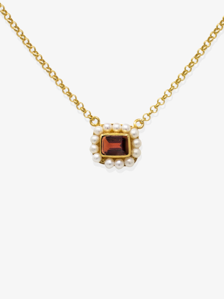 Pieces from our Luccichio collection are named after and inspired by the meaning of this Italian word, which describes the spark coming out from the light. This necklace is strung with a faceted garnet pendant in a handcrafted setting with an array of lustrous pearls. It's made from either 10-karat solid gold or 18-karat gold vermeil and has a slim, adjustable chain to perfect the drop.