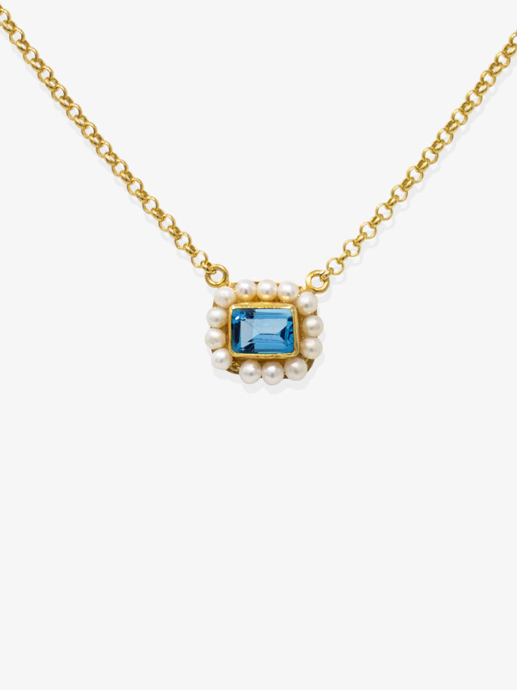 Elevate any outfit with our Luccichio Necklace. Handcrafted in Italy, it showcases vibrant blue topaz and delicate freshwater pearls, exuding elegance and making a statement. A must-have accessory for any occasion.