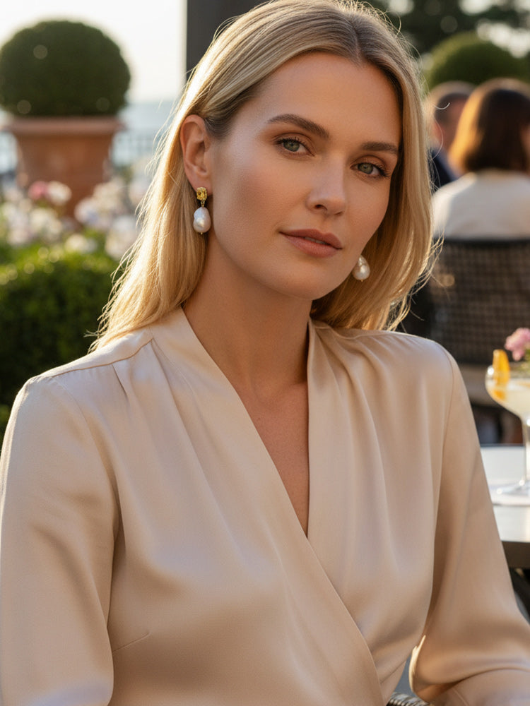 Illuminate your look with our Luccichio Citrine And Baroque Pearl Earrings. The natural yellow citrine gemstones and lustrous baroque pearls add elegance to any outfit. Handcrafted in our workshops in Italy using traditional setting technique, these bold earrings are a must-have for any jewelry collection, available either in gold-plated silver or solid 10-karat gold.
