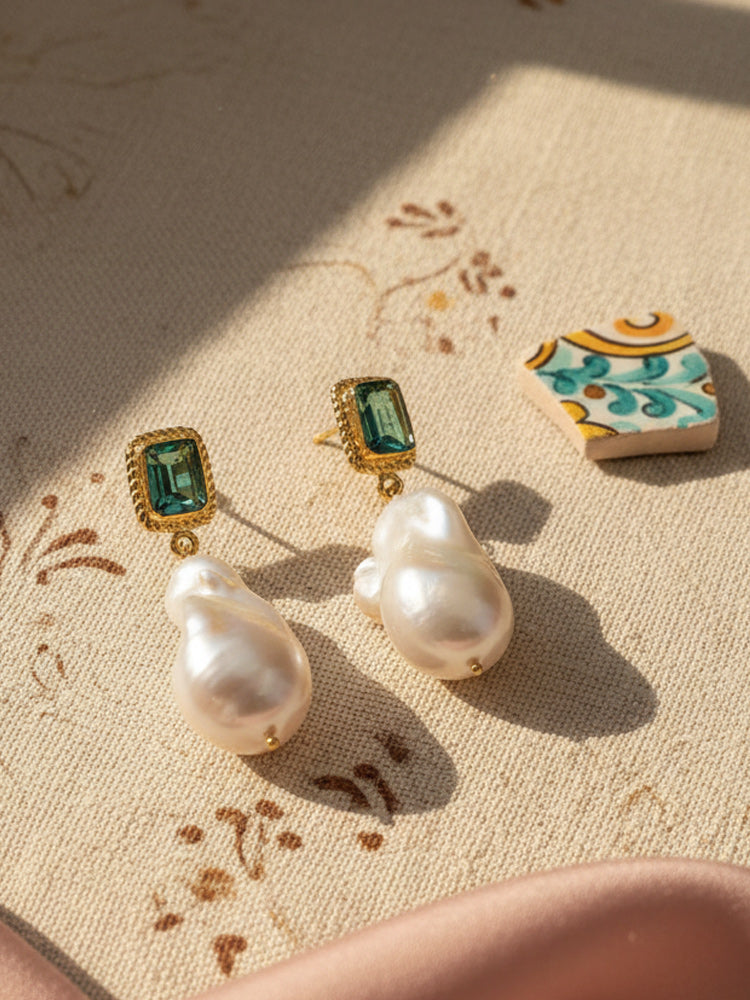 Add a refined statement to your look with these green quartz and baroque pearl drop earrings, handcrafted in Italy using traditional artisanal techniques.