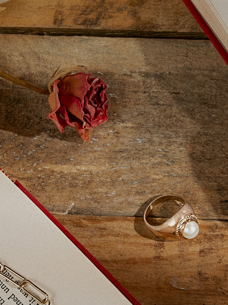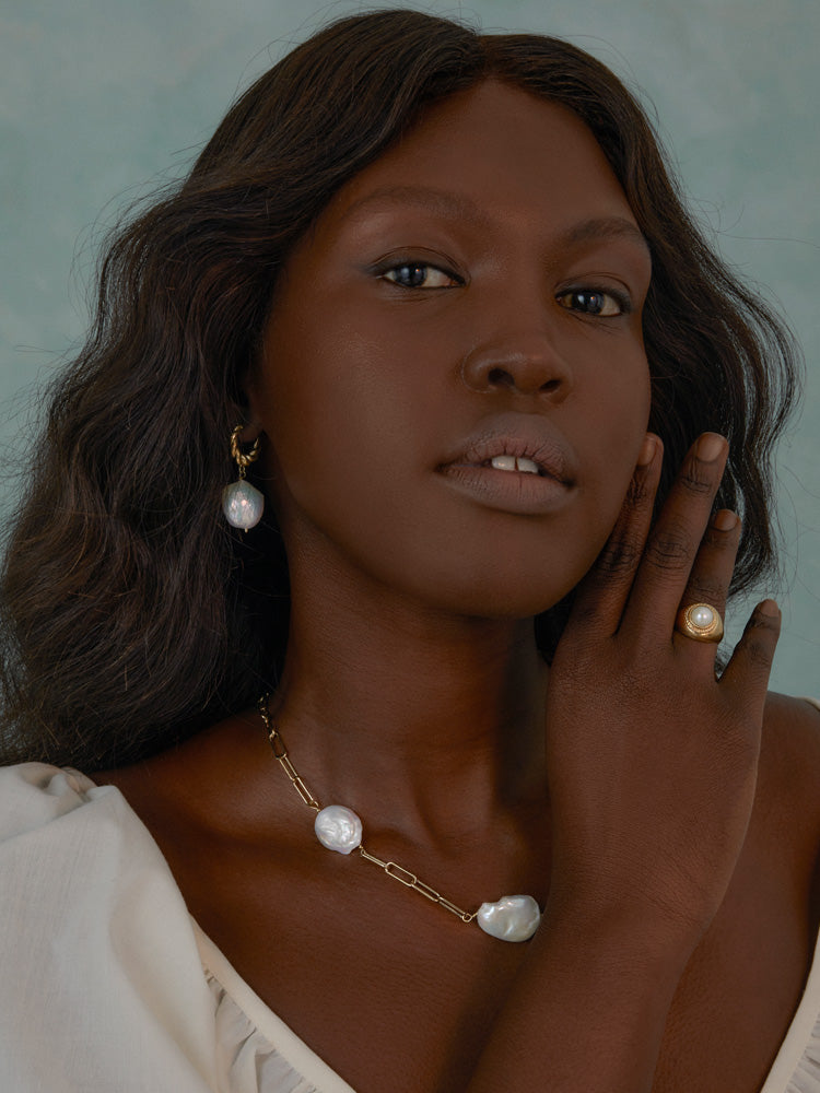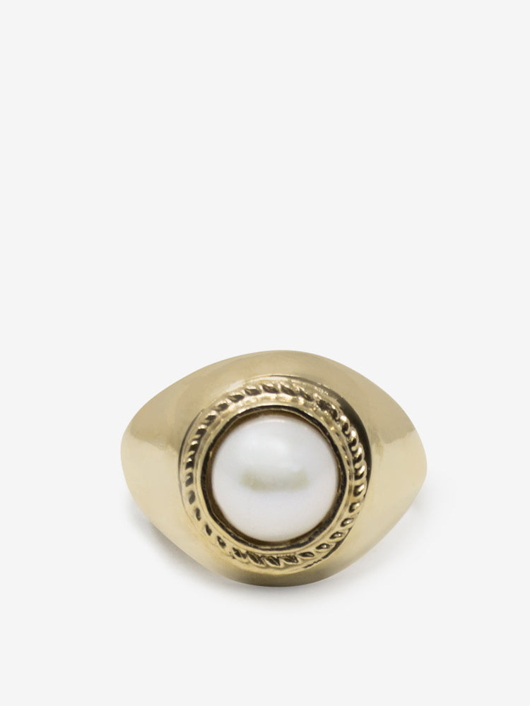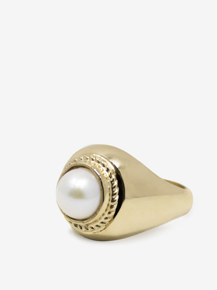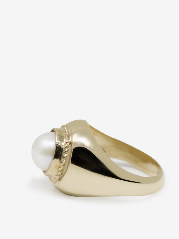 We love using pearls in our designs because we view them as a natural treasure of the sea. Hand-crafted from 18-karat gold-plated recycled silver, this signet ring is centered with a lustrous freshwater Akoya pearl that is expertly bezel-set in a twisted ribbon.