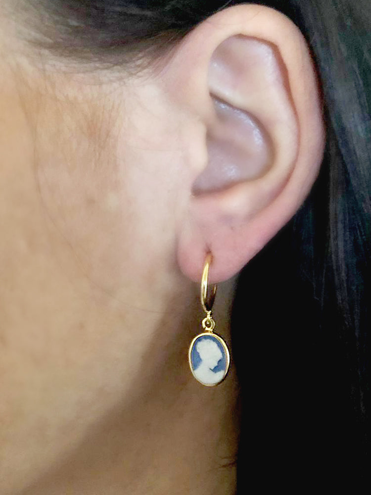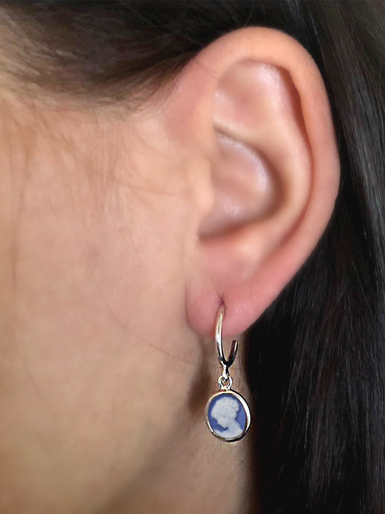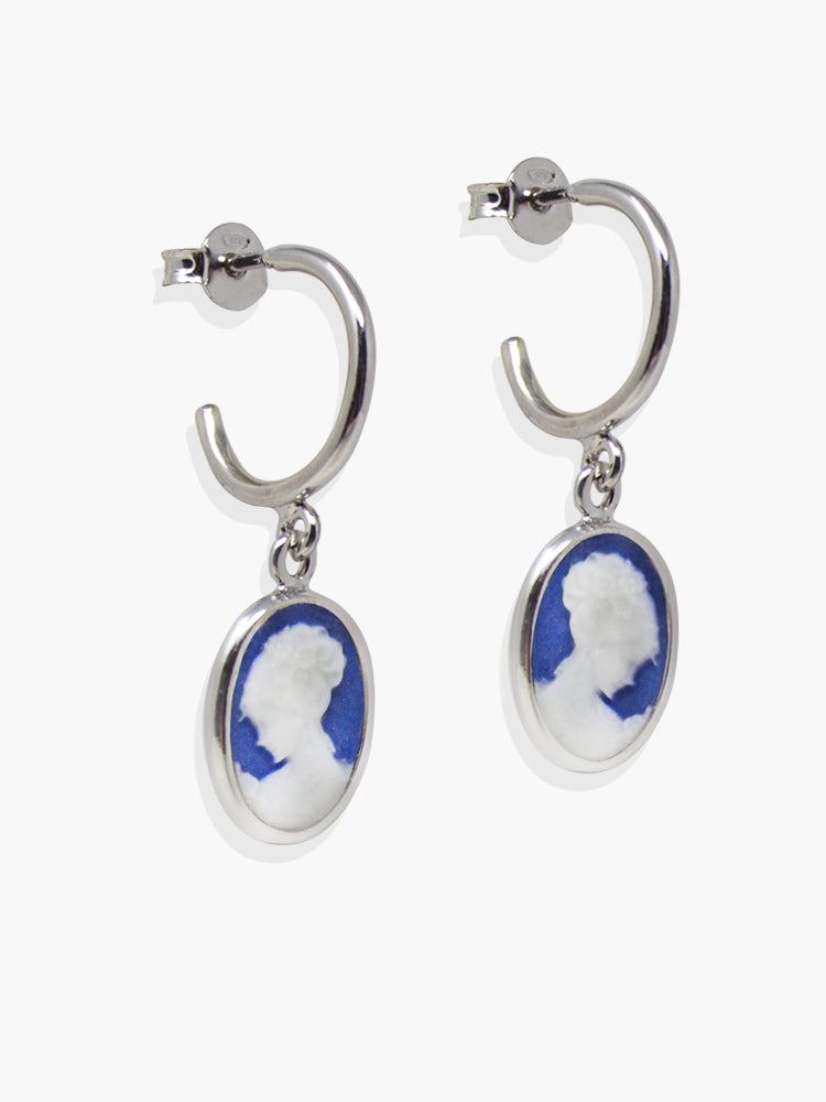 These Blue Mini Cameo Hoop Earrings are handcrafted in Italy using sustainable materials, such as recycled silver and porcelain. The unexpected design of our mini hoops with mini cameos adds a touch of elegance to any outfit. Expertly crafted and sustainable, these earrings are perfect for the environmentally-conscious fashionista.