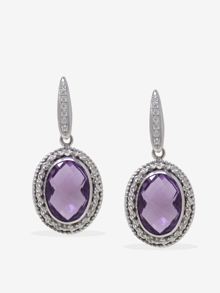 Experience the beauty of ancient jewelry with our Demetra amethyst earrings. Handcrafted in Italy with stunning sterling silver and vibrant citrine quartz, these earrings are inspired by Etruscan and Roman designs.