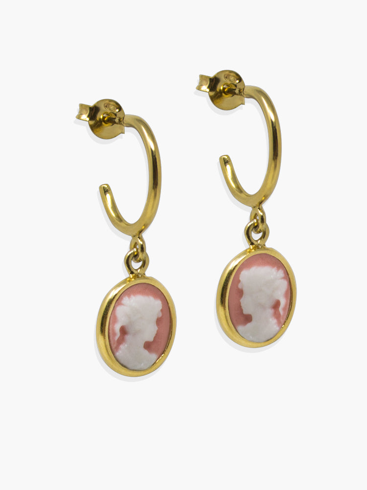 Crafted in Italy, these Pink Mini Cameo Hoop Earrings are a timeless addition to any jewelry collection. Each earring features a handmade porcelain cameo, adding a touch of elegance and uniqueness. The mini hoop design provides a modern twist, making these earrings perfect for any occasion.