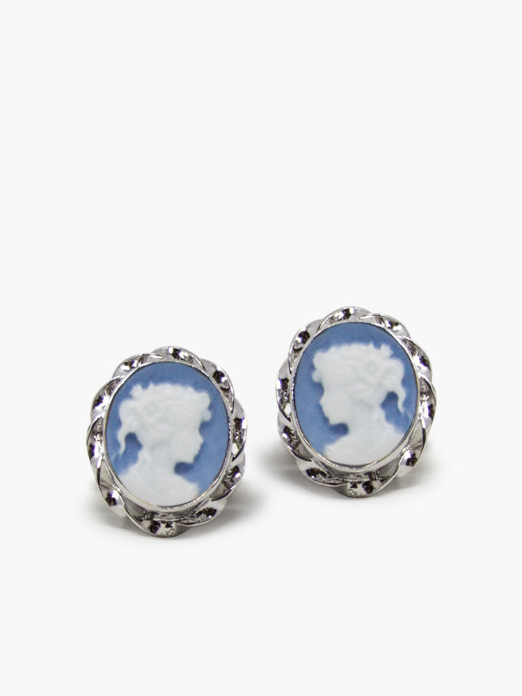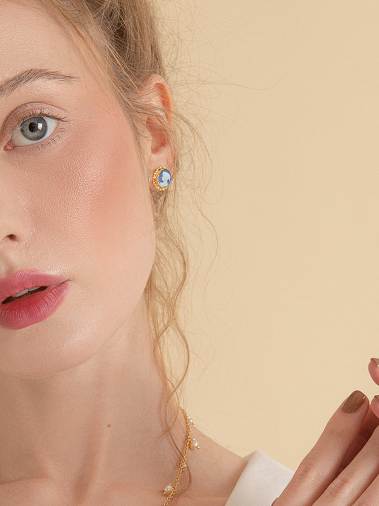 Sky Blue Mini Cameo Stud Earrings